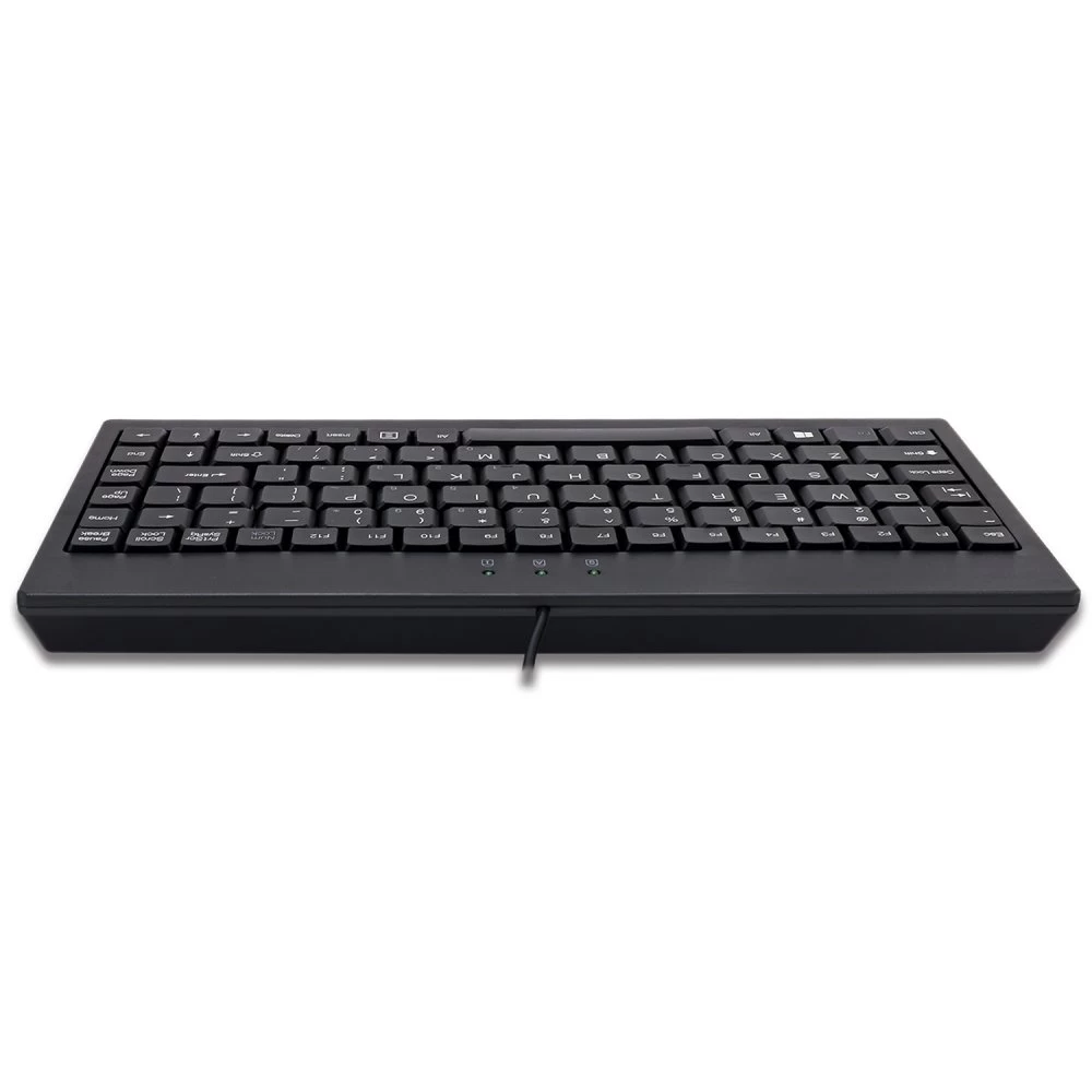 The mini size keyboard is less than 12” wide, and is an impressive space saver for desktops in homes or offices. It is ideal for use in POS, kiosks, warehouses, manufacturing environments, or in any small working area.