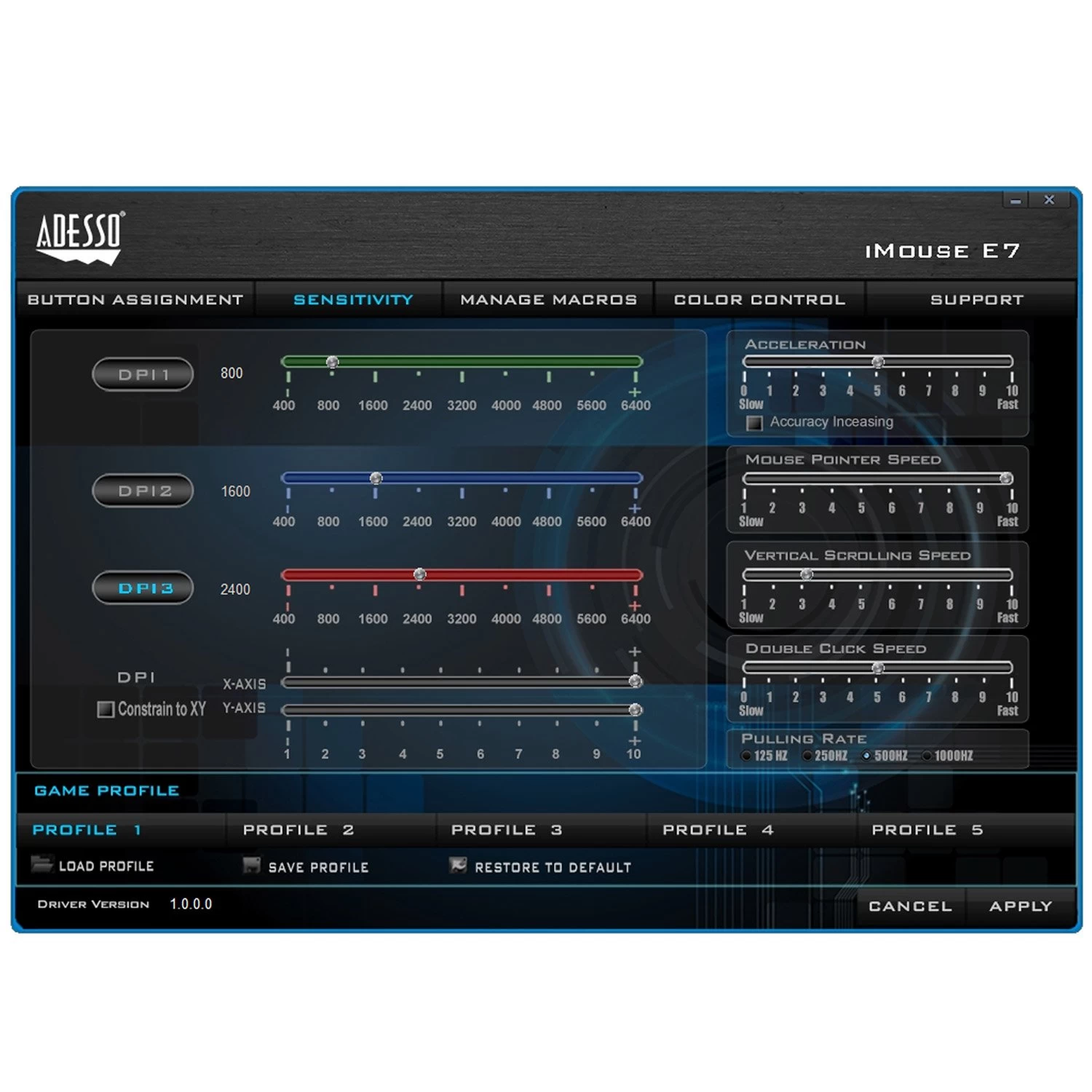 DPI levels from an individual range of 400-6400 . Easily switch from