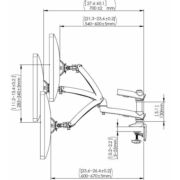 | Weight Capacity | Supports 17.6 – 30.8lbs (8 – 14kgs) for each monitor |
