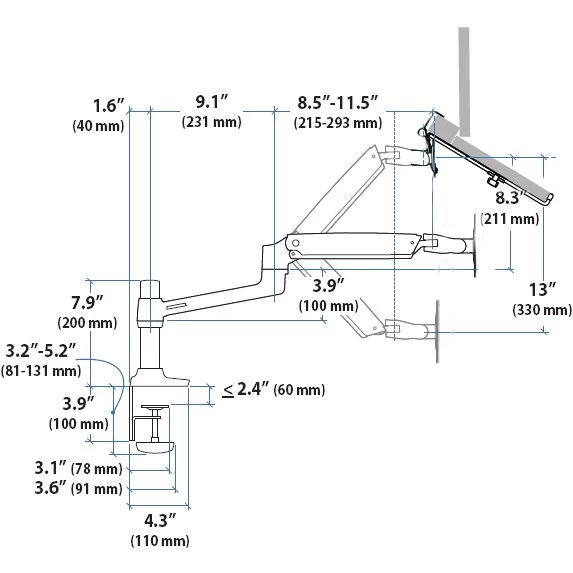 - The Desk Mount Arm along with the notebook tray provides ergonomic comfort.