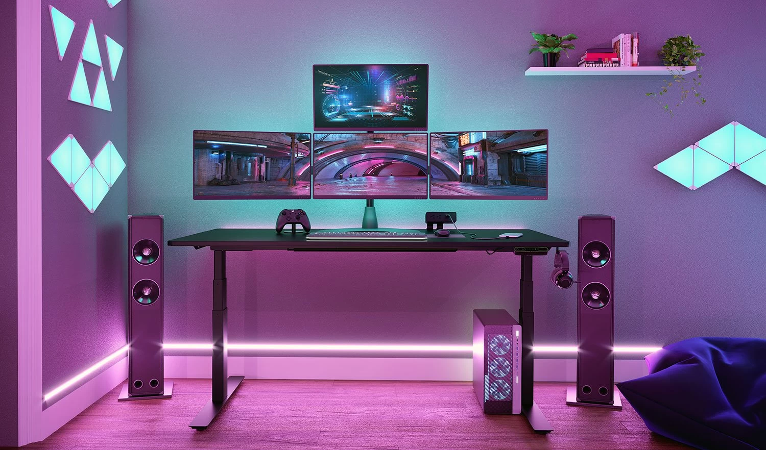 the triple monitor stand. The Height Adjustable Pivots allow you to