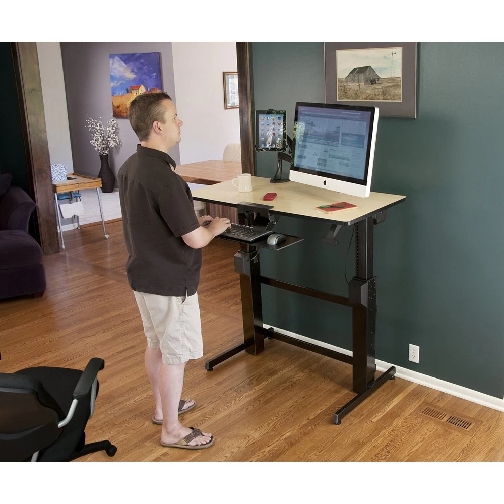 a lever. With a large worksurface that can hold weight of up to 65 lbs,