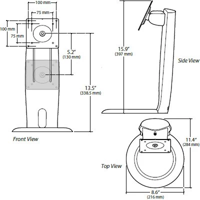 | Monitor Size | Up to 27″. When used with 27″ display: Monitor will hit base when rotated from landscape to portrait mode if it is not tilted back completely. When in portrait mode, lift range is limited. |