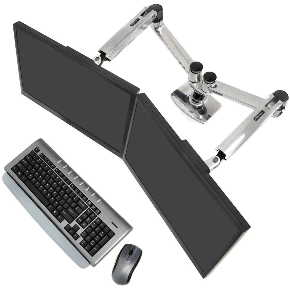 Ergotron 45-245-026 allows you to position dual monitors side by side for increased productivity. It also lifts the monitors above the desktop creating valuable desk space.