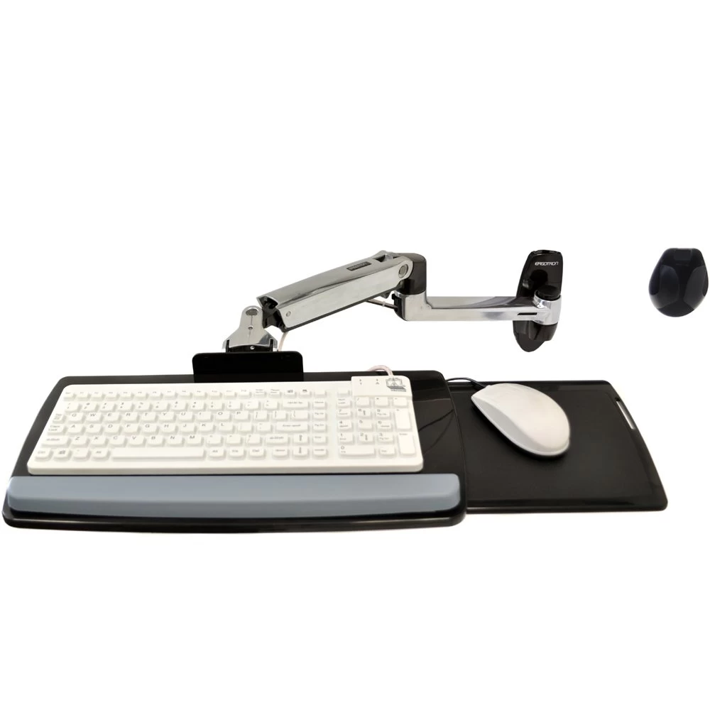 Ergotron 45-246-026 allows you to position your keyboard to the most comfortable typing position, seated or standing. With the ability to slide the mouse tray to the left or right, this wall mount keyboard tray can provide the most ergonomic relief to the forearms, wrists and shoulders.