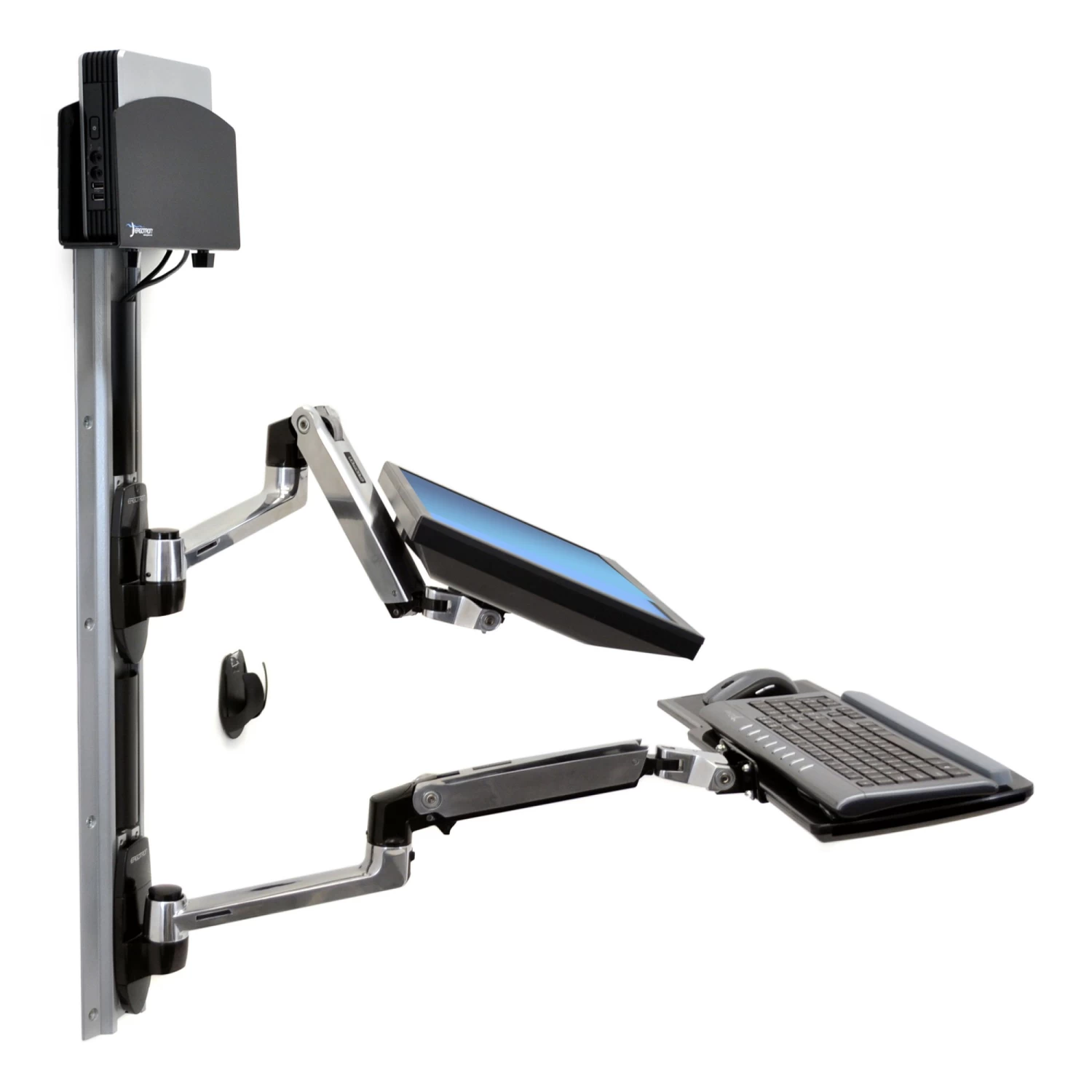 | LX Wall Mount System with Small CPU Holder (polished aluminum arms, black cpu holder) | |
