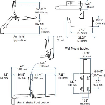 | Weight Capacity | Display = 6–18 lbs (2.7–8.2 kg); worksurface = 10 lbs (4.5 kg); keyboard, mouse and barcode scanner = 4 lbs (1.8 kg) |