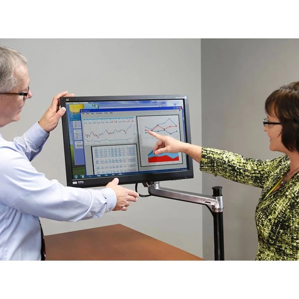- 20″ height adjustability allows users to alternate between sitting and standing positions while working on the display