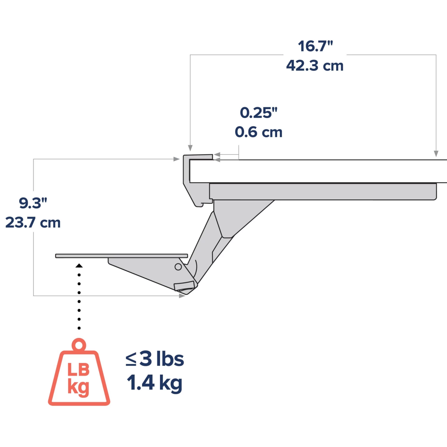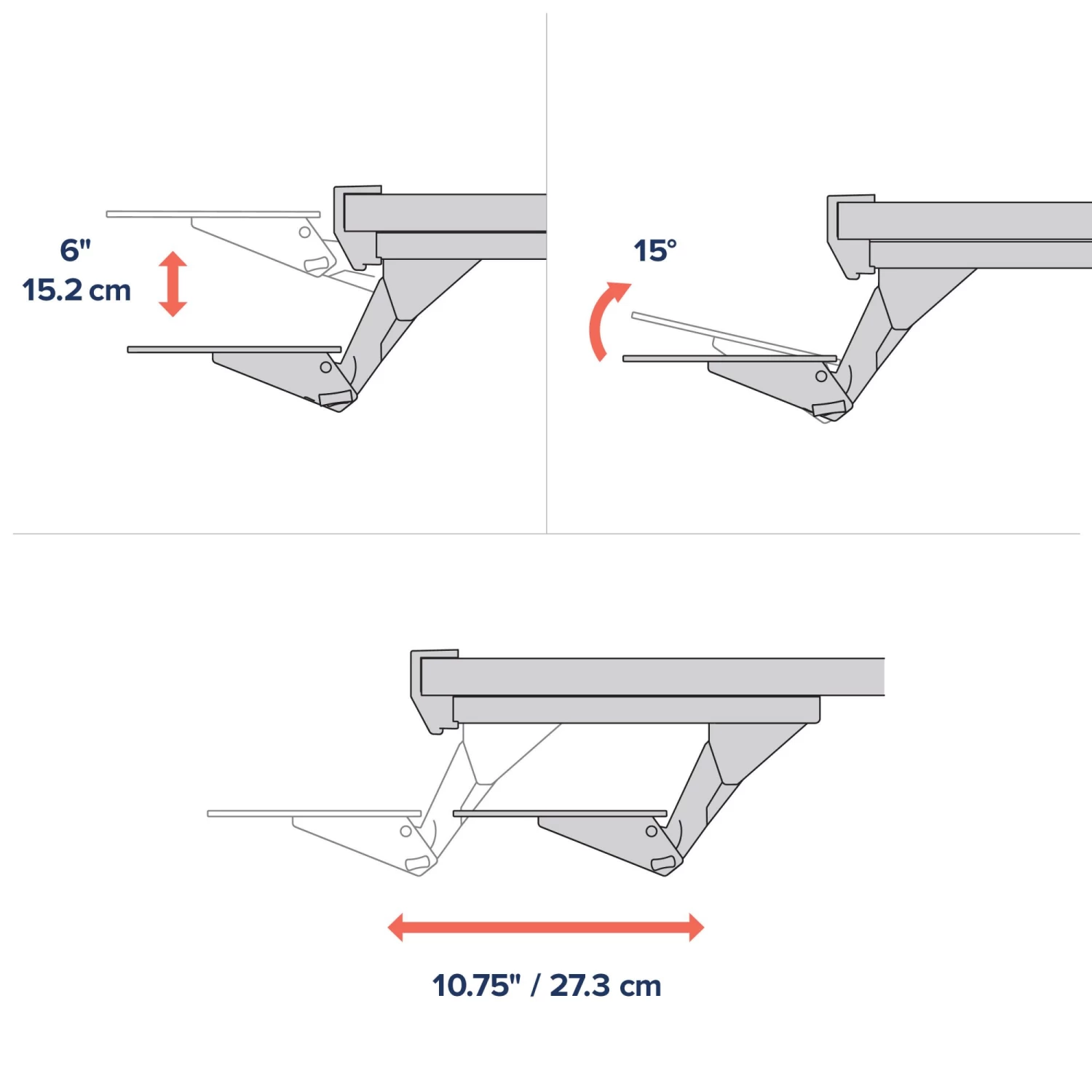 | Tray Dimensions | 26.9″ x 8.9″ (68.3 x 22.6 cm); large surface designed specifically to accommodate ergonomic keyboards. |