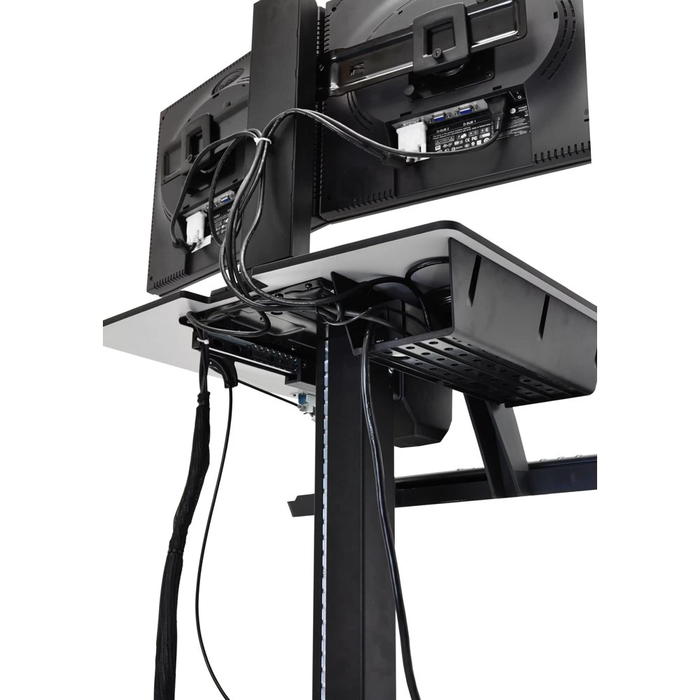 | Weight Capacity | Maximum load on height-adjustment assembly = 32.5 lbs (14.7 kg). Includes weight of displays and keyboard in addition to contents on Worksurface and in Cable Storage Box. LCD mount capacity = 6-14 lbs (2.7-6.3 kg) each, 12-28 lbs (5.5-12.7 kg) total |