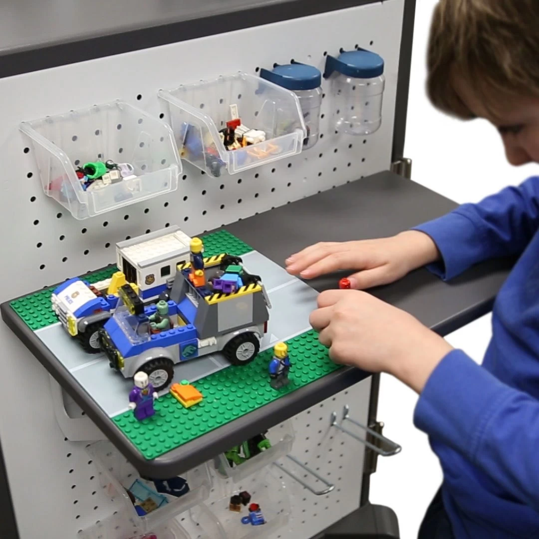 Customizable & configurable – Accessorize the pegboard for STEM projects; add a monitor arm for presentations