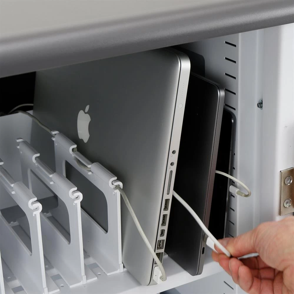 Adjustable rows & dividers – Holds any device: 36 Chromebooks and tablets, or 24 laptops with 15″ screens