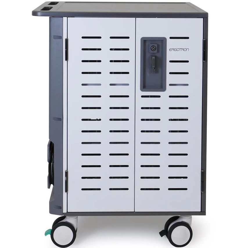 Transport, secure and charge up to 40 devices in one place with Ergotron DM40-2009-1 Zip40 Charging Cart. The adjustable dividers in this easy-to-move cart fit tablets, Chromebooks, Ultrabooks, MacBooks and laptops, keeping your devices ready for any lesson plan. PowerShuttle Technology quickly charges devices while helping prevent electrical circuit overload. With no assembly required, this charging cart moves to the head of the class.