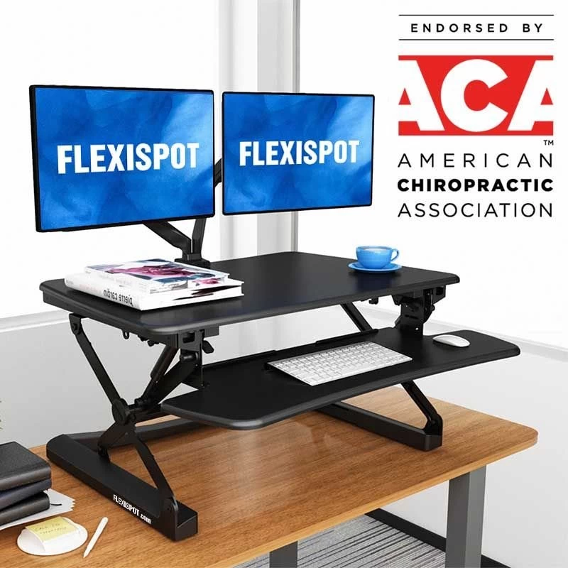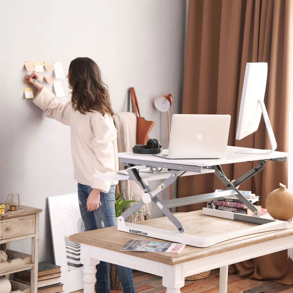 FlexiSpot’s desktop workstation provides an easy way to transition