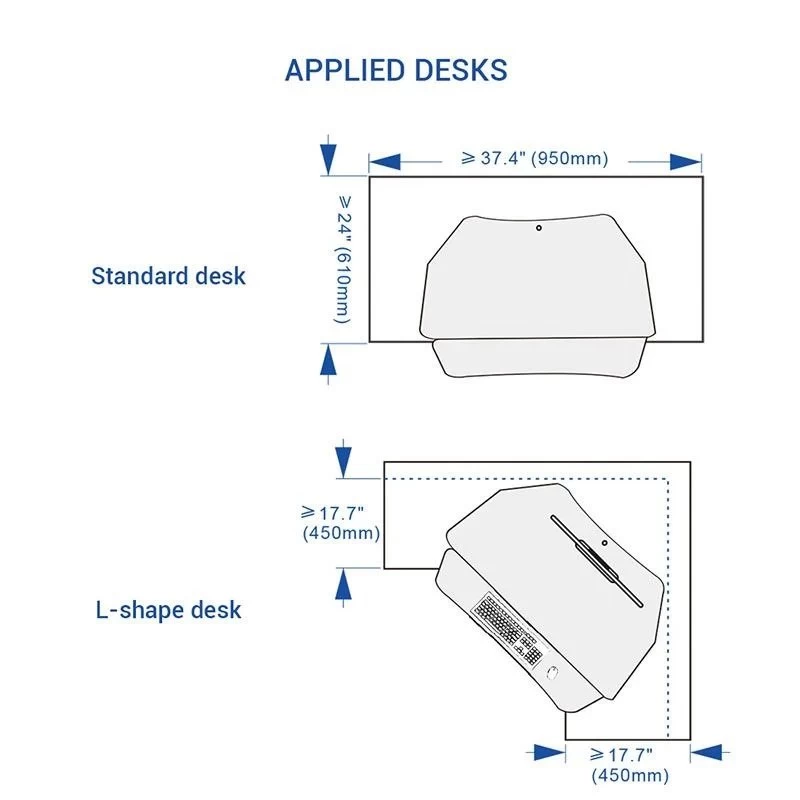 using only 13 lbs of force. Lowering requires just 3 lbs of force. - Fits most people’s height – Placing ClassicRiser on a 28” high desk will accommodate users up to 6’1” tall. Placing ClassicRiser on a 31” high desk will accommodate users up to 6’5” tall.