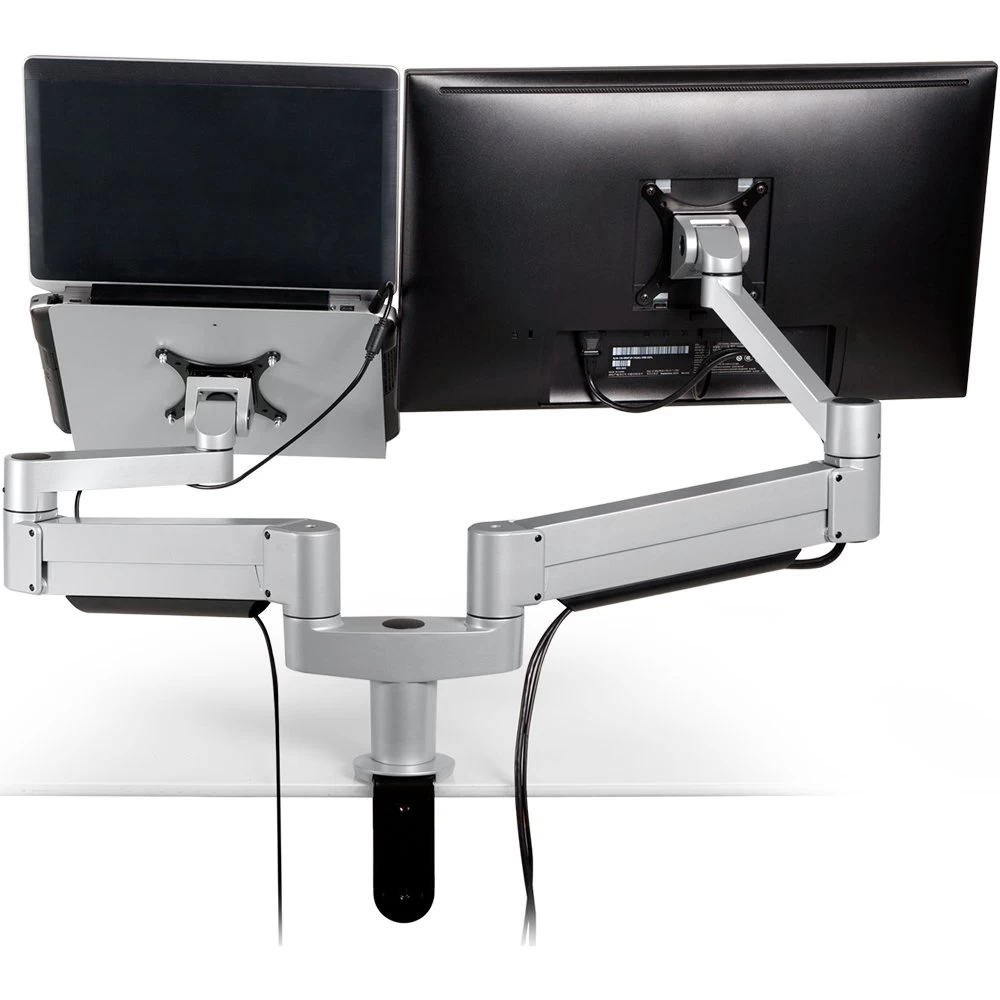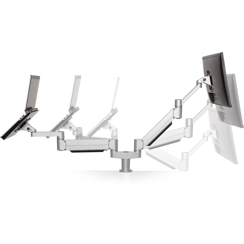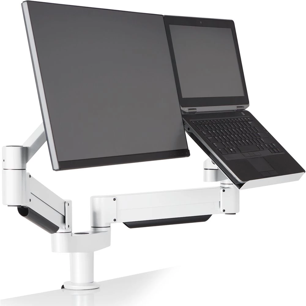 adjustable laptop and monitor arm allows mobile workers to combine their