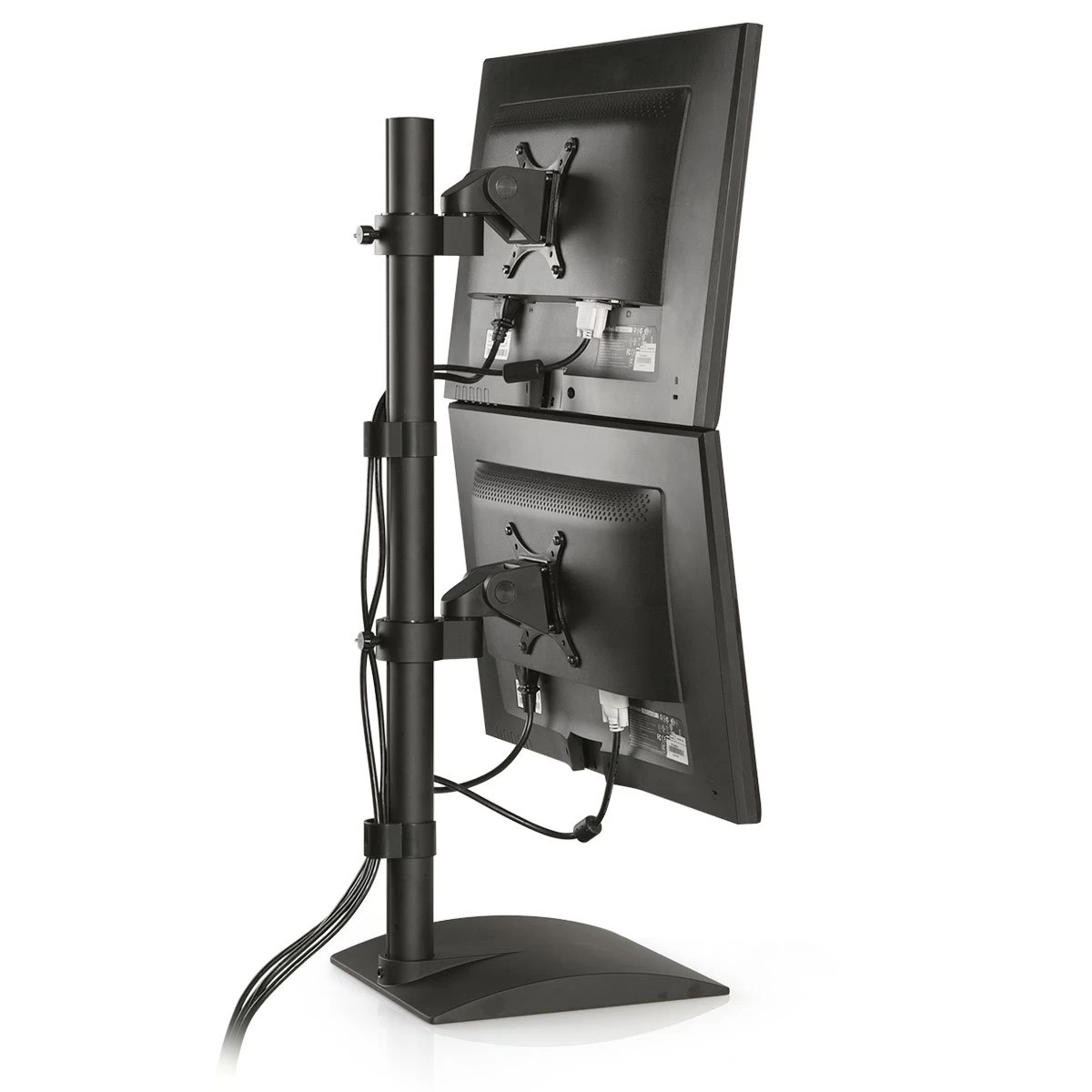 base provides instant setup, making it a user-friendly dual monitor stand for