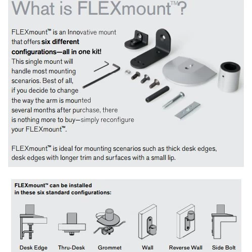 FLEXmount with six mounting options, including wall