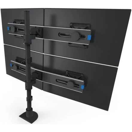 This quad LCD monitor mount is VESA-monitor compatible – 100 mm VESA adapter included