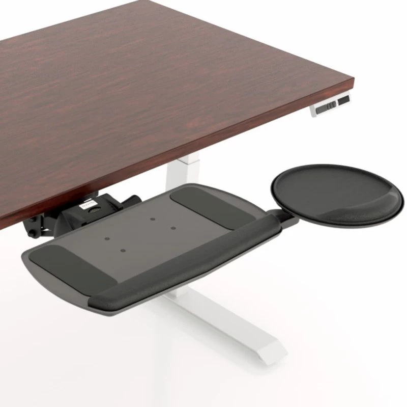 The durable molded tray features non-skid keyboard pads, a memory foam