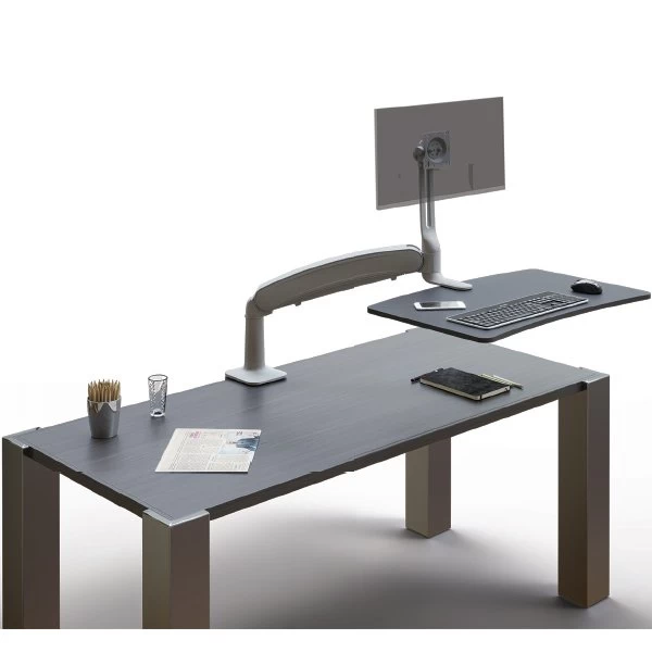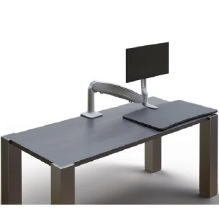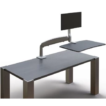 desk to a sit-stand workstation. The Solace Single uses a gas assist
